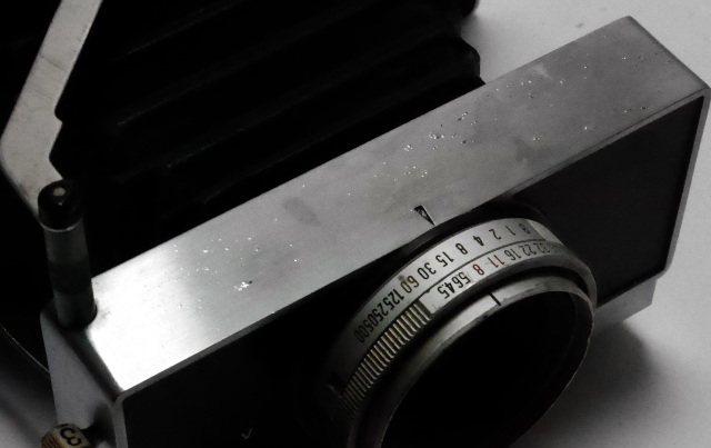 当機にはあの富岡のトミノン 114mm4.5 をセイコーSLVシャッターにマウントして載せ、折りたたみ式距離計連動ファインダーはパララックス補正としたのZeiss Ikonのものが付いています・・・ファインダーは西ドイツ製、もしかして日独米合作?