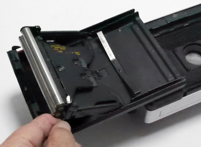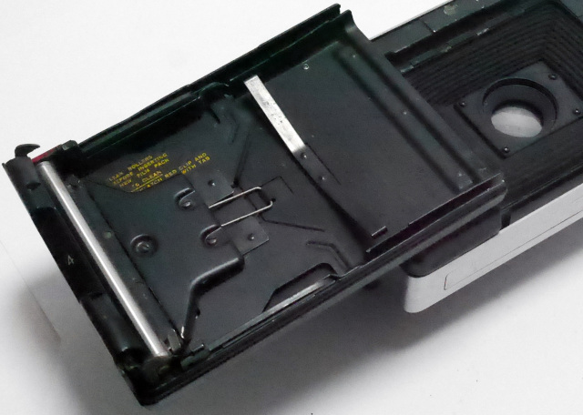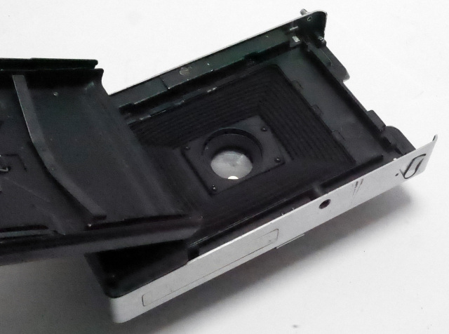 その後190型についで限定モデルといわれる黒仕上げの185型が少数製造されたよう です、一連のモデルは完全マニュアル構造で、自動露出機のように電池は不要なのですが、共通ボディフレームのためダミーの電池室があります。