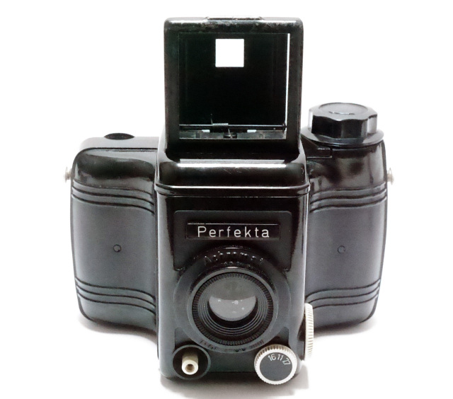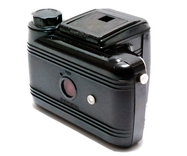 一見 、アメリカ製の いかにもフィルムメーカーの戦略商品に見えるのですが、パーフェクタって言うと ドイツ製の折り畳み式二眼レフが思い出されますが、ご案内のラインメタル・パーフェクタは、第二次世界大戦後にドイツ民主共和国で製造されたカメラシリーズの一つです。ベークライトの普及により、戦後、入手困難だった金属製部品の価格が下がりました。資料記述によると ラインメタルは、第二次世界大戦前、戦中、そして戦後を通して、ドイツ最大の兵器メーカーの一つでした。戦後は、カメラやその他の家庭用品の製造へと事業を多角化しました。