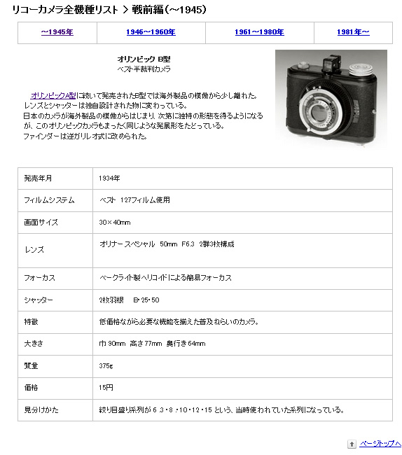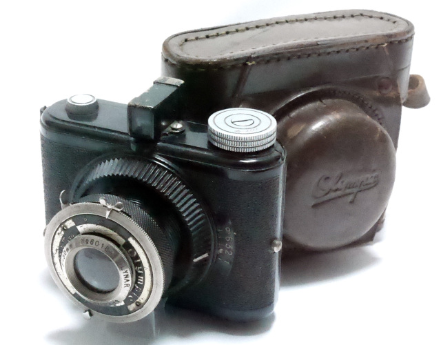 オリンピックは現リコーのホームページの紹介記事によると製品で 127規格フィルムでベスト半裁判のベークライト製ビギナーカメラですです、コンパクトでヘリコイド式と言うのは個人的にタイプの機械ではあるのですが、ボディがベークライトと金属バネの経年劣化もありますj、整備を済ませ シャッターを含め不具合無く動くのですが、絶体精度はどうでしょうか、あの頃の機械がケース付きで残っており、動く・・・・と言うのが付加価値で この価格になっております、ご理解いただける方にお届け出来れば幸いです。