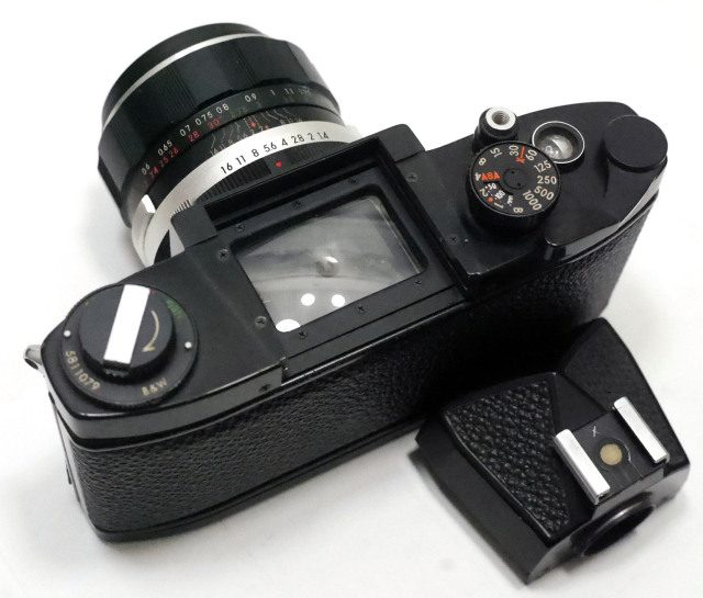 ペンタプリズムのホットシューはREⅡに付けた時にだけ機能します。ミランダの特徴のフロントシャッターボタンはなくなっています、これでも REより17800円も高くなってしまいました。