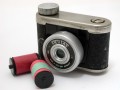 カメラが高価な頃、我国だけでなく各国でカメラの形をしたオモチャはあったようです、このドイツ製 PETITAX もそのうちの一台・・・16mm相当の裏紙付きロールフィルムに14mmX14mmフォーマットの絵を作る事が出来ます。 手元の資料雑誌には下記のように紹介されています。